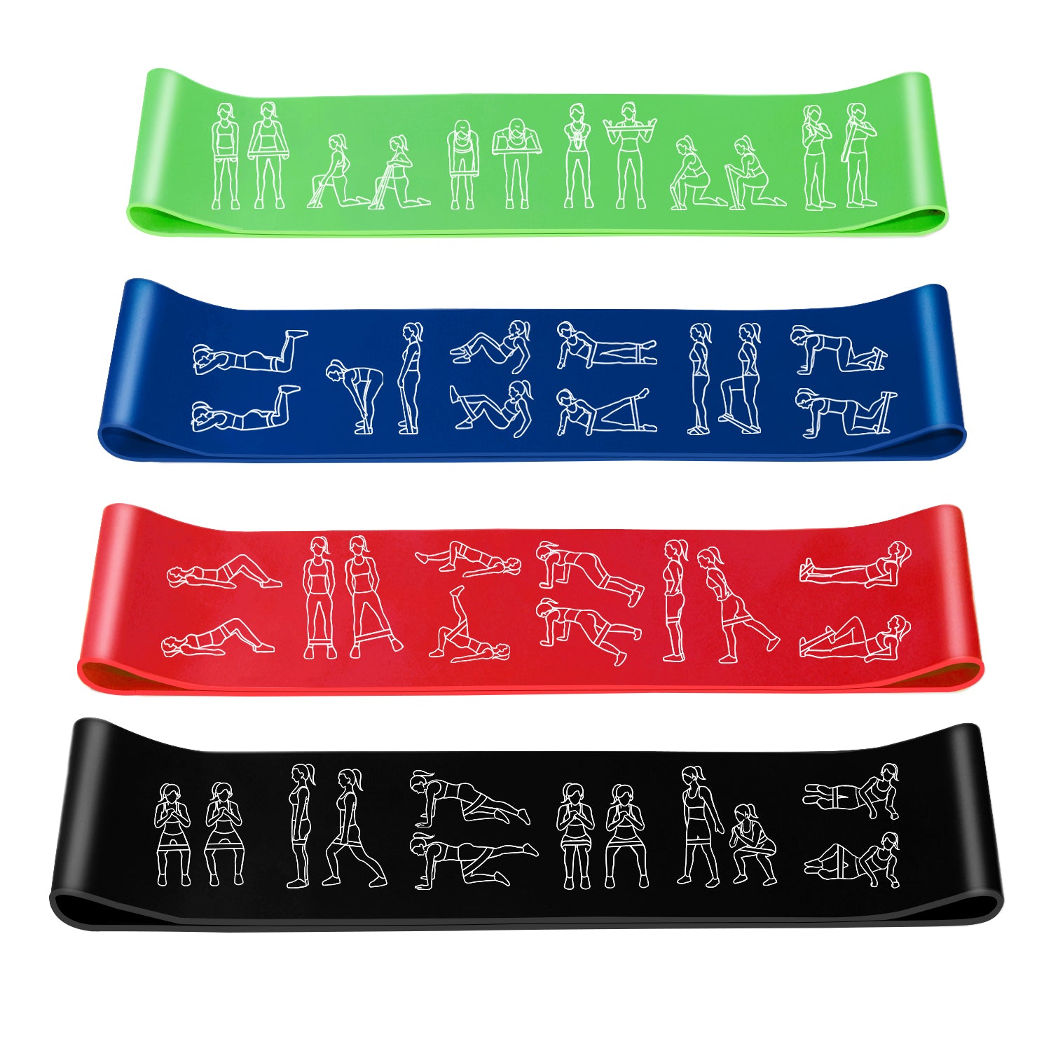 • 4 DIFFERENT STRENGTHS - The bands cover a wide range of resistance levels, designed to suit a variety of exercises, help you train ALL MUSCLES for ALL PURPOSES, including glute and leg activation, yoga/pilates, ankles and arms.