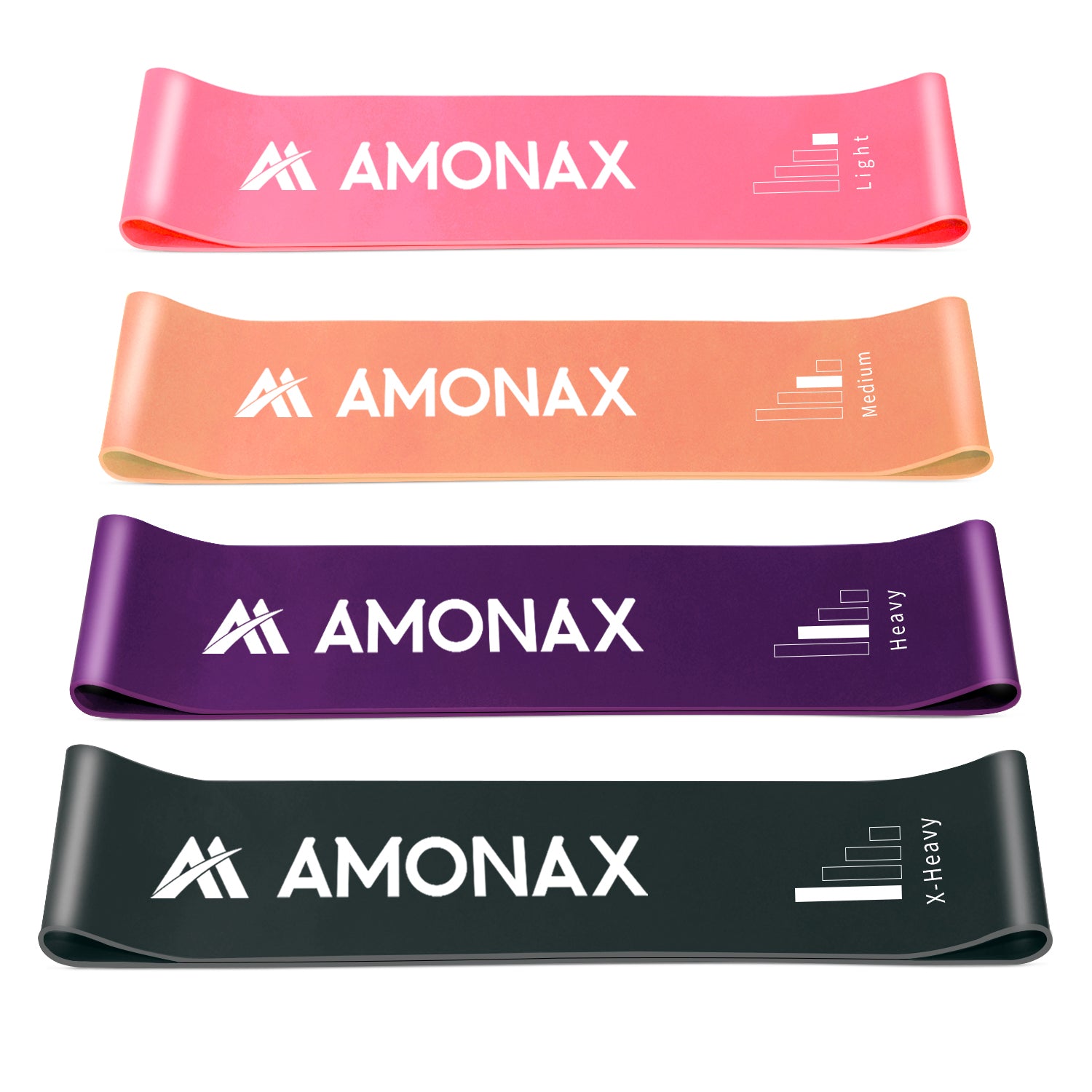 Amonax resistance bands workout have 4 different thicknesses, providing a wide range of resistance strengths. Amonax resistance bands workout also have added thickness, giving the bands greater durability to prevent snapping or rolling during exercises.