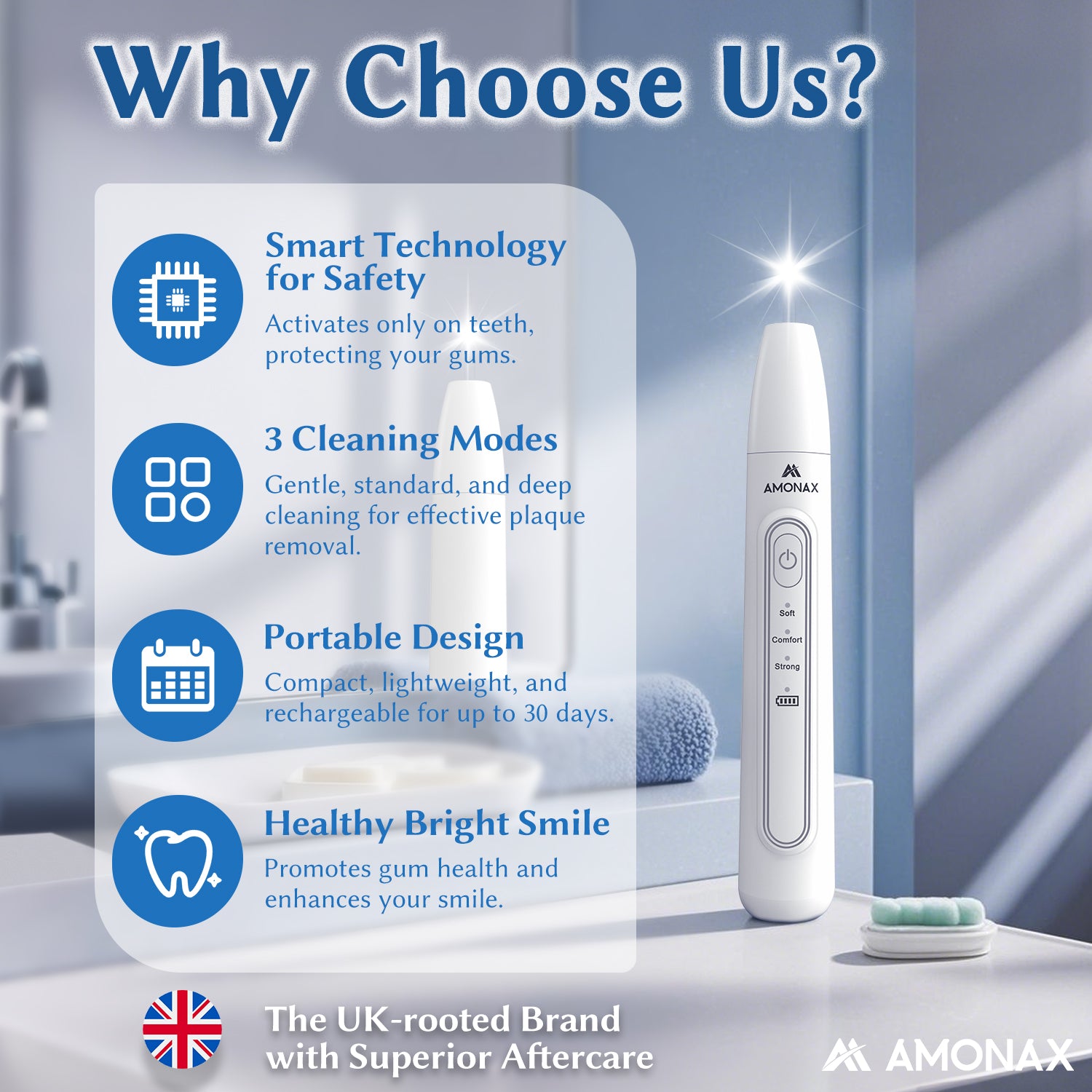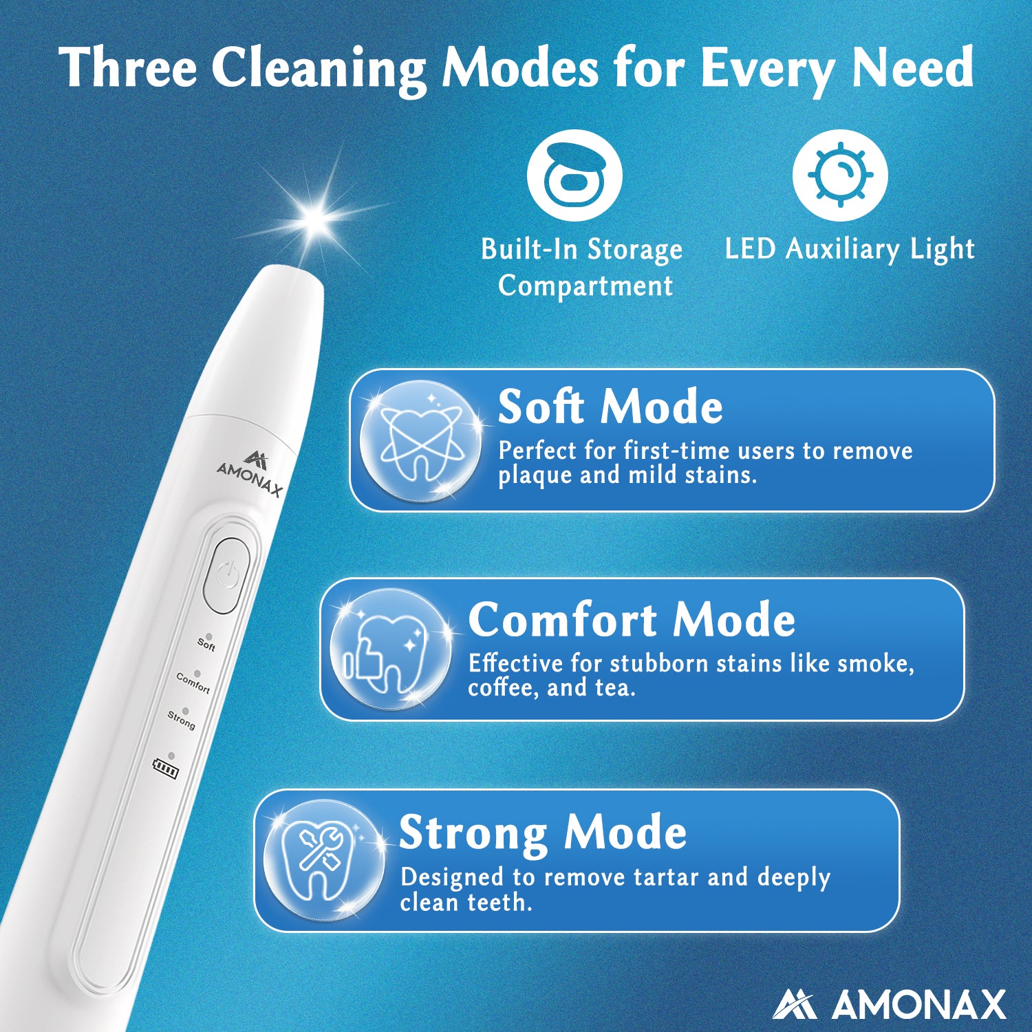 AMONAX adapts to every user¡¯s needs, delivering powerful teeth cleaning, gentle care for sensitive gums, and precise cleaning for braces and oral appliances. Its portable design ensures effortless integration into your lifestyle, giving you a brighter, healthier smile every day.